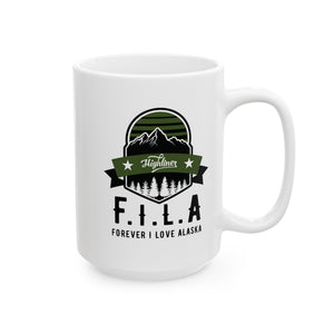 This classic mug features a bold declaration of your love for the Last Frontier. Available in a 15oz size, it's perfect for a satisfying cup of coffee, tea, or hot cocoa. Made from durable ceramic, this mug is built to last and microwave and dishwasher safe for easy cleaning.